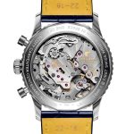 Navitimer B02 Chronograph 41 Cosmonaute Scott Carpenter Centenary poganja Breitlingov hišni mehanizem, kaliber B02, ki je ročno navijalni kronograf s stolpičnim kolesom. ‘Tiktaka’ s frekvenco 4 Hz ali 28.800 alternanc na uro in nudi do 70 ur rezerve energije navitja. Pohvali se tudi s certifikatom COSC, dočim je njegova posebnost 24-urni prikaz v kombinaciji z manualnim navijanjem. Na vprašanje čemu tako, je odgovor, da bi rotor pridelal bore malo energije v vesolju zavoljo gravitacije. 🙂