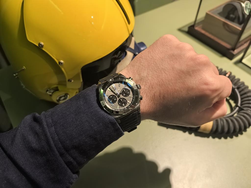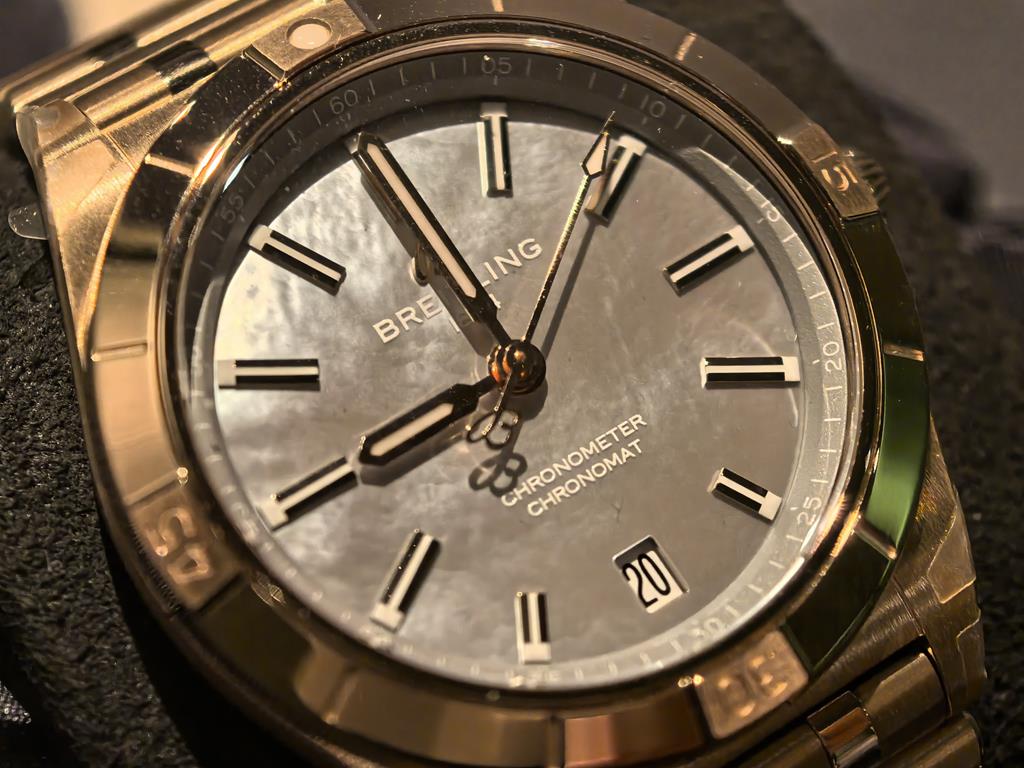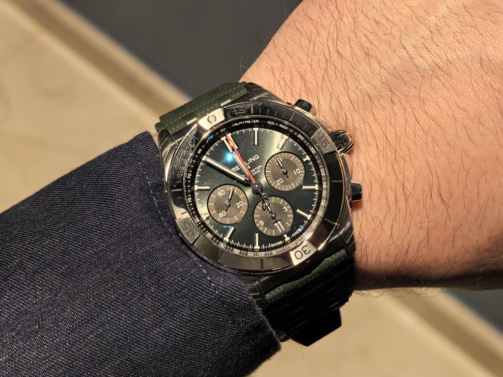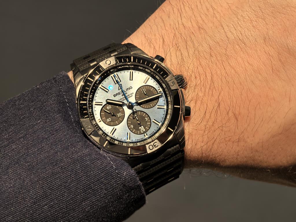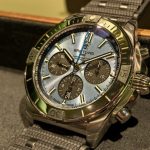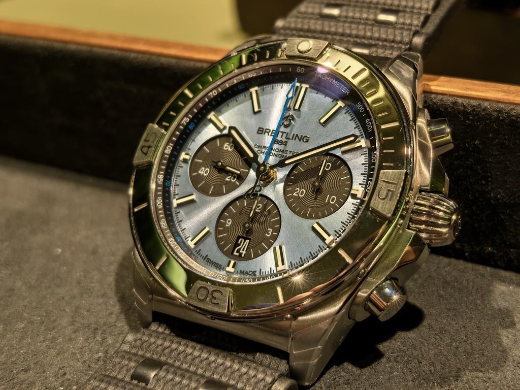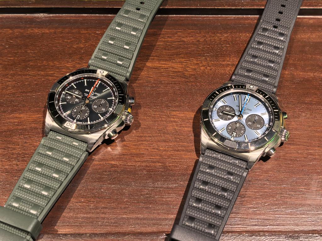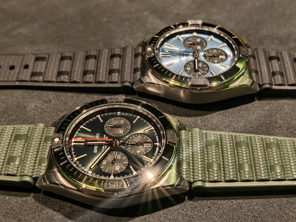Vrhunec večernega druženja sta dopolnila, takrat še, predpremierna Chronomata, ki se predstavljata z ledeno modro ter globoko zeleno številčnico, brušeno v stilu sončnih žarkov. Piko na i dodaja še kombinirani pašček tekstila in kavčuka, narejen v stilu kovinske zapestnice ”rouleaux”. Slednji je premierno na voljo na modelni liniji Chronomat B01 42 in sicer v črni, modri ter zeleni barvi.