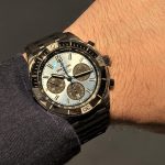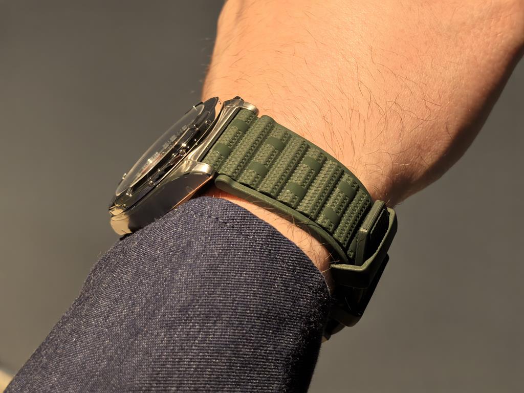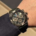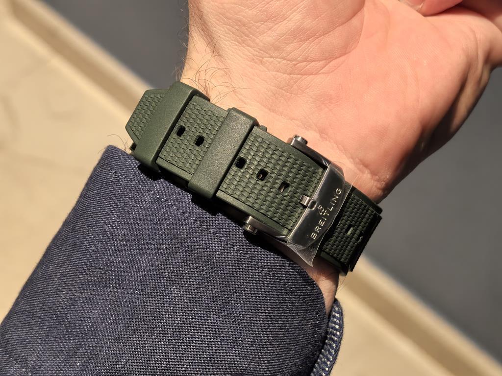 Ohišje meri 42 mm v premeru, kar je dokaj standardna velikost za robustno športno uro. Breitling je močno povezan s pilotskimi urami in tukaj lahko vidite ta DNK, s preveliko, narebričeno krono in luneto z jezički, zaradi česar je uporaba še posebej enostavna, ko nosite debele usnjene pilotske rokavice. Všeč mi je enobarvna zasnova z jekleno luneto ter ohišjem, s poudarjeno kombinacijo brušenih in poliranih površin.