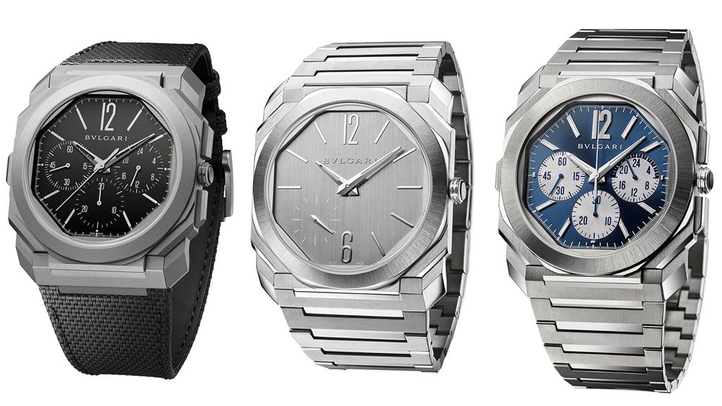 Prvi noviteta je Bulgari Octo Finissimo S Chronograph GMT. Pohvali se z večjim premerom, ki zdaj znaša 43 milimetrov, medtem ko debelina oziroma višina ohišja meri le 8,75 milimetra. Številčnica sije v modri barvi z učinkom sončnega žarka. Števci krofografa pa se s sivo barvo ujemajo z indikatorji ur, kazalci ter zapestnico. Vodotesnost je preverjena na 100 metrov.