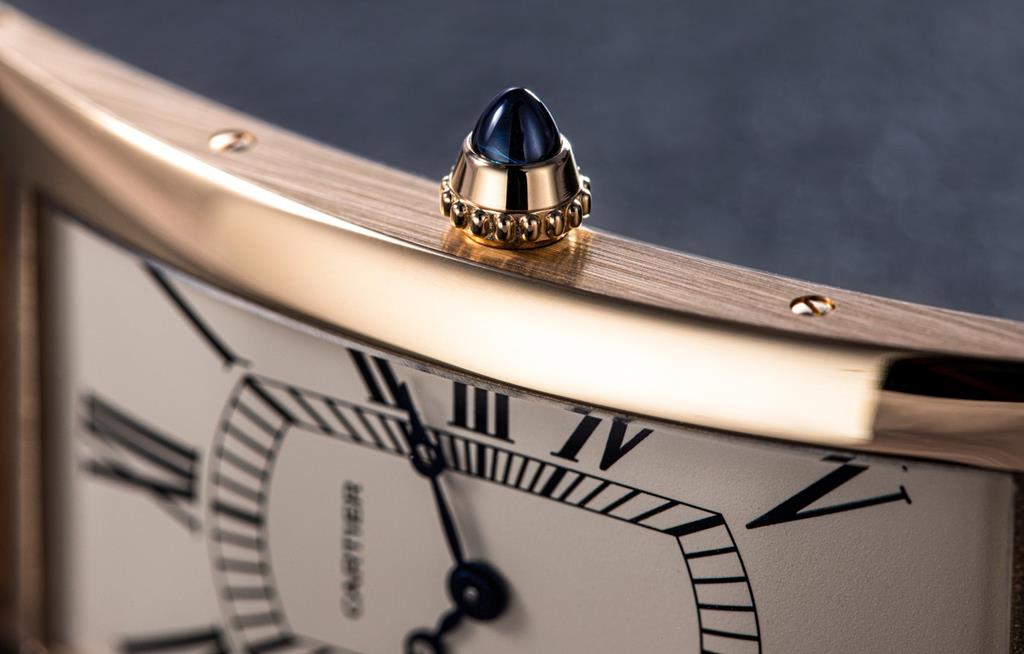 Za obeležitev 100. obletnice zapestne ure Tank Cintree je Cartier izdal omejeno različico, ki se oblikovno navezuje na legendarni model. Zaobljeno ohišje iz 18-karatnega rumenega zlata v dolžino meri 46,30 milimetra in v širino 23 milimetrov. Njegova debelina znaša zgolj 6,40 milimetra. Številčnica na bež podlagi je predstavljena z rimskimi številkami, medtem ko znameniti napis ”Swiss made” izgubil mestu ob 6. uri. Urni in minutni kazalec sta kontrastne modre barve v obliki jabolka.