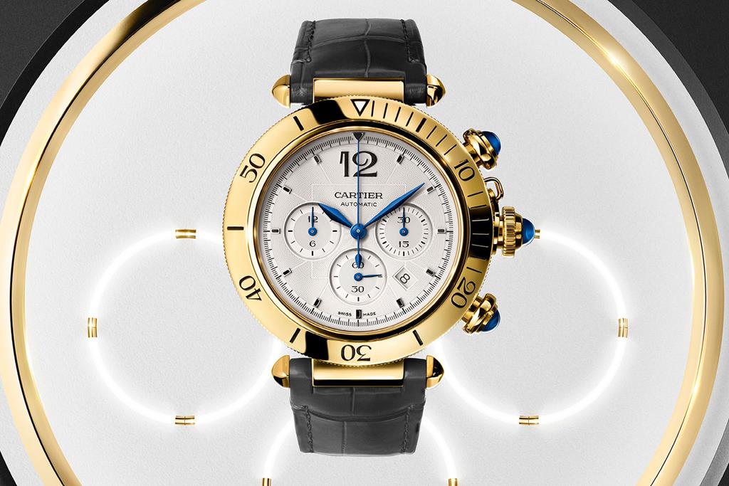 Novi kronograf Pasha de Cartier ima veliko bolj možato pojavo, s pomanjšano vrtljivo luneto in je na voljo s premerom ohišja 41 mm iz nerjavečega jekla ali 18k različici iz rumenega zlata.