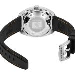 Veliki indeksi in kazalci so napolnjeni z belim premazom Super-LumiNova, ki zagotavlja odlično berljivost pod vodo ali v temnejših pogojih. Oranžna barva je ponovno uporabljena za šive črnega gumijastega paščka FKM, ki se na zapestje pritrdi z zaponko iz nerjavečega jekla.