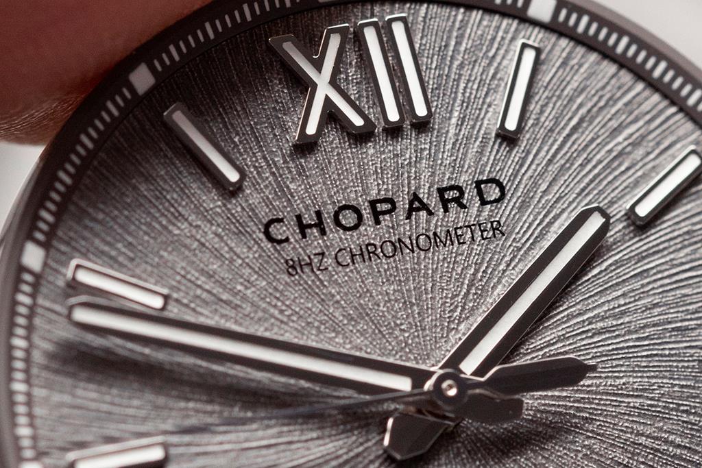 Kot se spodobi, pa se k dobremu mehanizmu, prileže še pompozna zunanjost. Chopard je za to 250-kosovno serijo pripravil poseben tretma, in ohišje premera 41-milimetrov izdelal iz titana, h kateremu sovpada integrirana zapestnica. Zamenjava kovine ustvari drugačno, malo temnejšo, podobo časomera, ki bo zavoljo lastnosti titana, na zapestju precej bolj lahkoten in udoben za nošnjo. Svojevrsten nastop pričara številčnica s sivim galvanskim zaključkom, medtem ko so indikatorji ur premazani z luminiscenčnim materialom.