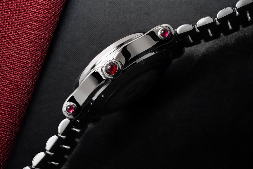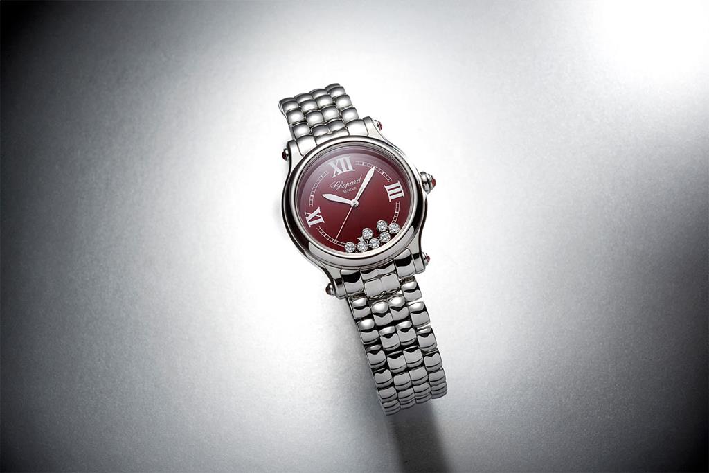 Sincere Fine Watches je izbralo Happy Sport za praznovanje svojega platinastega jubileja in s tem poudarilo brezčasno privlačnost ure. Bordo rdečo številčnico, okrašeno z rimskimi urnimi oznakami, dopolnjuje pet kabošon brušenih safirjev na ušesih in kroni, ki dodajo osupljiv vizualni element.