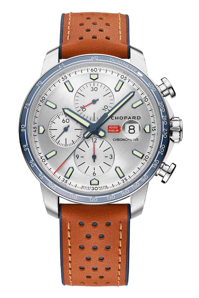 Ljubitelji bencinskih hlapov bodo pozdravili gumbe kronografa zasnovane v stilu ”batov” ter krono z odtisom volanskega obroča. Zadnjo stran ohišja obdaja pokrov z gravuro logotipa dirke ter številko ure iz omejene serije. Pri tem ne gre zanemariti, da ohišje omogoča do 100 metrov vodotesnosti. Na srebrni številčnici s krožno brušenimi vzorci v podštevičnicah izstopajo še kazalci in indikatorji z modro obrobo, rdeči barvni inserti na kazalcih ter logotip 1000 Miglia.
