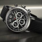 Trije modeli imajo luneto, krono in gumbe kronografa narejene iz tega materiala, medtem ko dvobarvni zapestni kos uporablja etično 18k rožnato zlato. Gumbi kronografa na desni strani ohišja imajo narebričen vzorec, ki predstavlja zavorne stopalke, medtem ko ima krona globlje zareze za boljši oprijem ter gravuro avtomobilskega volana. Čez številčnico se razprostira safirno steklo, ki dodaja retro pridih, medtem ko je zagotovljena 50-metrska vodotesnost ohišja z razstavno hrbtno stranjo in pogledom na delovanje avtomatskega mehanizma.