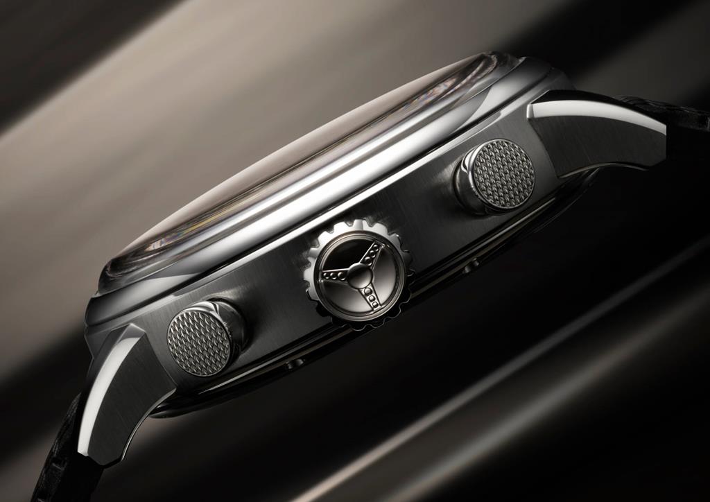 Trije modeli imajo luneto, krono in gumbe kronografa narejene iz tega materiala, medtem ko dvobarvni zapestni kos uporablja etično 18k rožnato zlato. Gumbi kronografa na desni strani ohišja imajo narebričen vzorec, ki predstavlja zavorne stopalke, medtem ko ima krona globlje zareze za boljši oprijem ter gravuro avtomobilskega volana. Čez številčnico se razprostira safirno steklo, ki dodaja retro pridih, medtem ko je zagotovljena 50-metrska vodotesnost ohišja z razstavno hrbtno stranjo in pogledom na delovanje avtomatskega mehanizma.