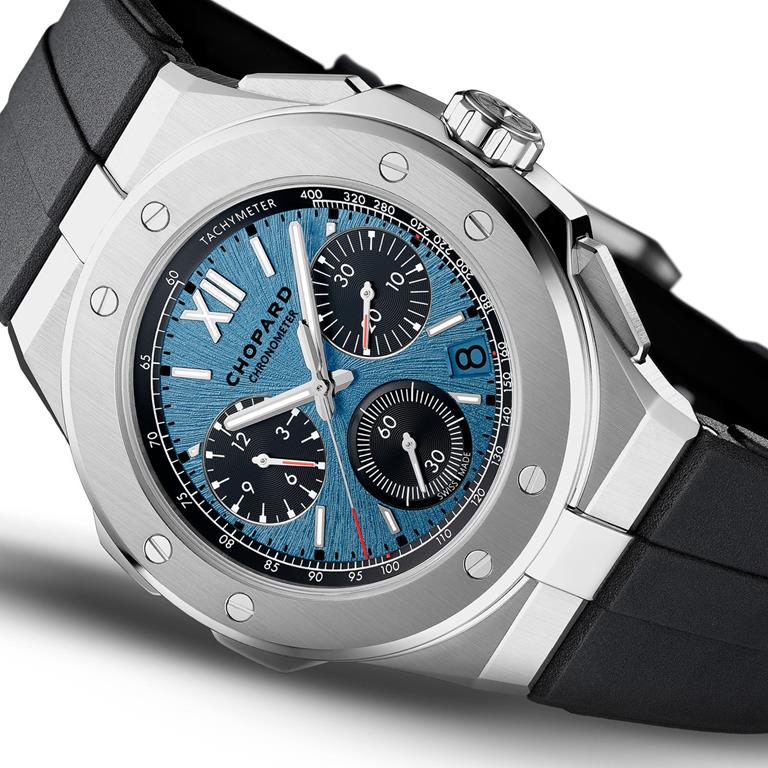 Chopardova športna linija ur Alpine Eagle, je bogatejša za novo različico Alpine Eagle XL Chrono s 44 mm ohišjem iz titana ter številčnico s teksturo orlovskega očesa “Rhône Blue”.