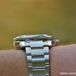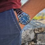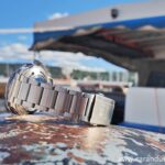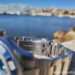 Ampak, če vam je vizualno všeč, si jo le naročite, saj jo lahko v nasprotnem primeru vrnete v 60 dneh. Čeprav dvomim da jo boste, saj ima ura toliko atributov, da ne vidim razloga, zakaj bi plačali več in dobili manj. S tem kažem na detajle kot je fini raztez jeklene zapestnice v zaponki, integriran sistem menjave paščkov, keramično luneto, prosojno modro steklo številčnice z vzorcem ”Miami” skozi katero se vidi delovanje mehanizma in še bi lahko našteval. Še beseda o mehanizmu, ki je delovna Sellita SW200, certificirana po COSC. Res da ima borih 38-ur zaloge energije navitja, vendar bo za dvakratnik zaloge energije potrebno odšteti vsaj 10 tisočakov, kateri pa še vedno ne bodo prinesli originalne luminiscence, sistema menjave paščkov …