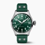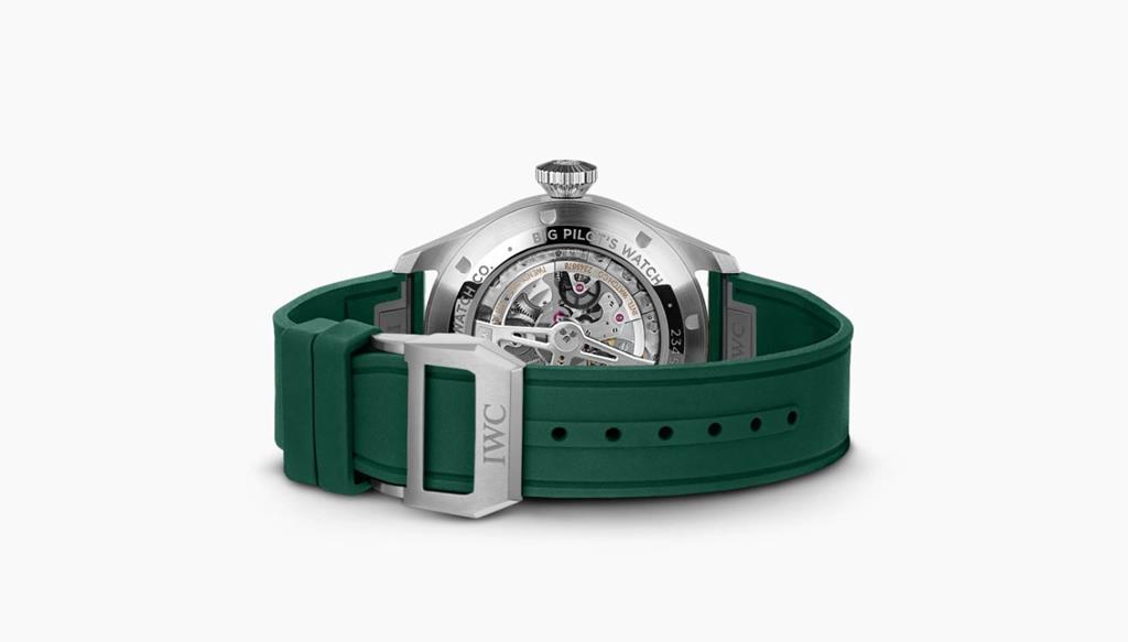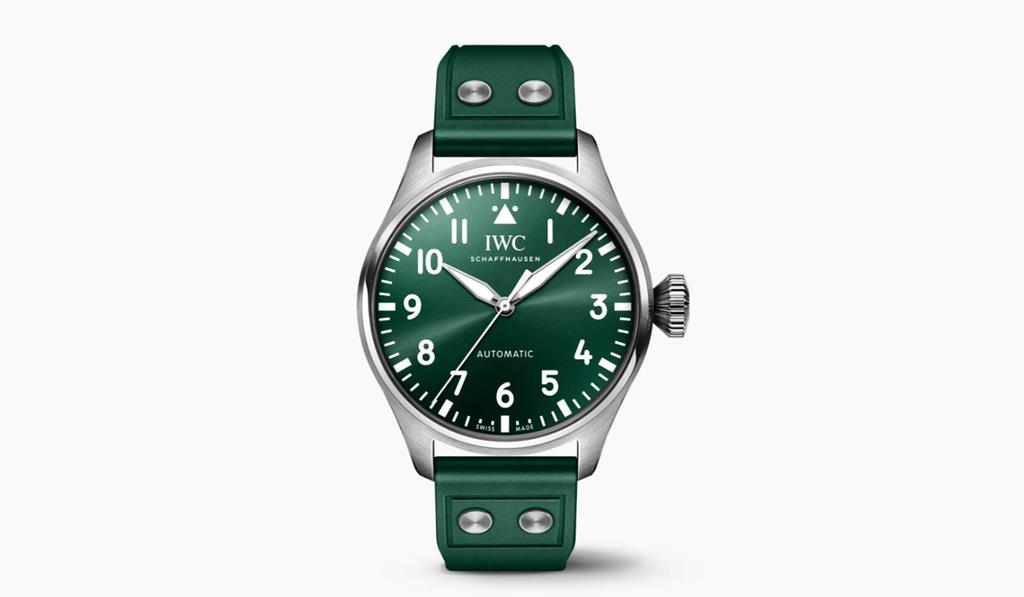 Poletna osvežitev pilotske kolekcije prihaja s trendnim modelom Big Pilot 43, kateremu je IWC namenil dirkaško zeleno barvo številčnice z barvno ujemajočim paščkom iz kavčuka.