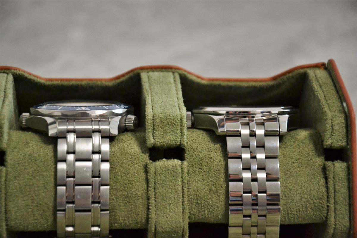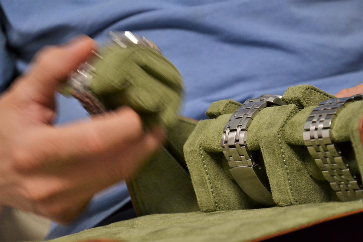 Minimalni, a pomemben detajl, so visoke stranice med mesti hrambe, ki preprečujejo, da bi se ure drgnile med sabo na kakršni koli način. Verjamem pa, da bo še kdo drug pozdravil posrečeno zasnovo odpiranja zavitka, ki se razpre v nekakšen krajši mehak pladenj, primeren za odlaganje in razkazovanje časomerov.