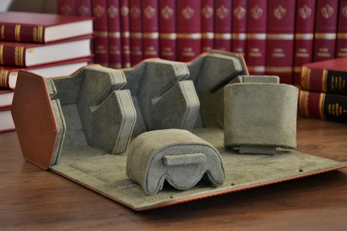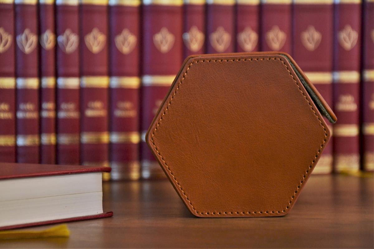 Heksagonski usnjeni zavitek za razkazovanje in shranjevanje zapestnih dragocenosti.