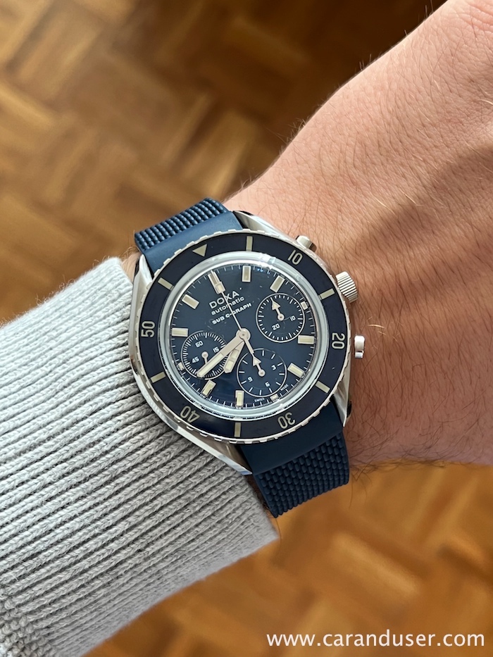 Našteti filtri v naboru pustijo pretežno zapestne ure potapljaškega tipa. Ure, ki so poleg pilotskih najbolj pogoste, zato je specifikacijsko gledano seznam možnosti sila obširen. Res pa je, da ljubitelji v sleherni uri iščemo zgodbo in sam sem si kot idealen dopustniški časomer želel nekaj z arhivskim izgledom, s funkcijo kronografa ter dejanskim pomorskim poreklom. In bolj kot ne po naključju, smo v uredništvo v tem terminu prejeli na preizkus čudovito karibsko Doxo s funkcijo kronografa. Seveda se bere kot marketinško zastavljena zgodba, a če bi objavil posnetek zaslona mojih zadnjih iskanj s spletnih marketov, bi zagotovo ozrli moj priljubljen stil …