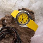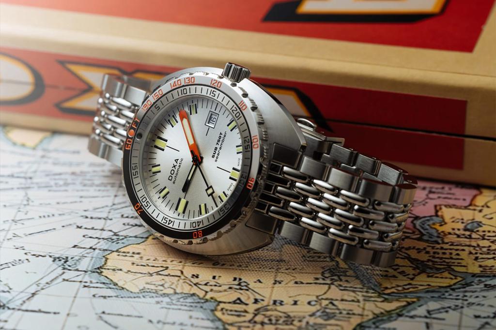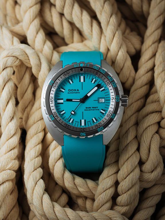 Ura je povezana z značilno zapestnico iz nerjavečega jekla v obliki „riževih kroglic“, opremljeno z zložljivo zaponko in potapljaškim podaljškom. Na izbiro so tudi gumijasti paščki v ujemajočem odtenku. Kolekcija Doxa SUB 750T je že na voljo na uradni spletni strani znamke po ceni 2.650 evrov oziroma 2.690 evrov, če izberete kovinsko zapestnico.