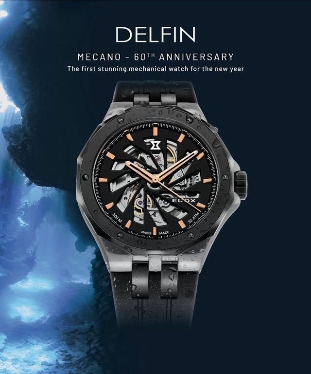 Delfin Mecano 60th Anniversary Limited Edition se ponaša s kovinskim ohišjem, prekritim s črnim nanosom (PVD), premera 43 mm. V njem se nahaja hišno predelan mehanizem Selita SW 200 z 42 urno zalogo energije. Njegovo delovanje je vidno tako skozi safirno steklo hrbtne strani, kot tudi skozi lopatice rotorja številčnice. Vsestranskost potapljaške ure dopolnjujejo luminiscenčni detajli na številčnici, vodotesnost z 200 m ter črn pašček iz kavčuka.