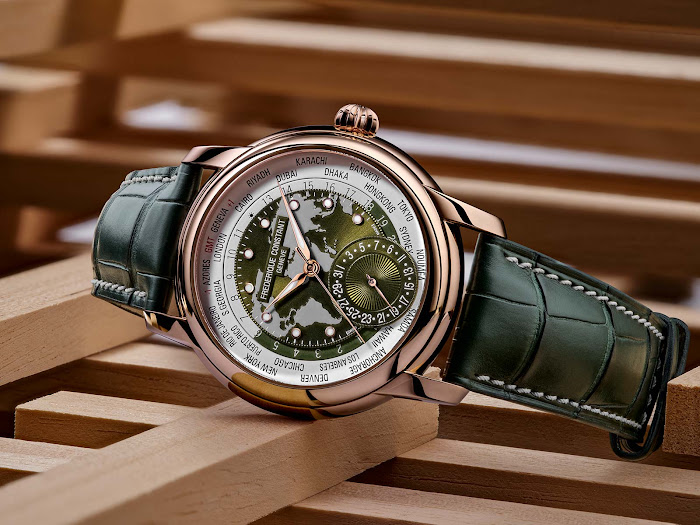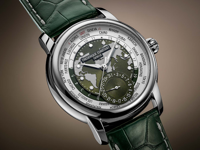 Frederique Constant je v linijo Classic Worldtimer Manufacture dodal še četrto modelno variacijo in tako se beli, črni ter modri različici, pridružuje še čudovita izdaja z zeleno številčnico.