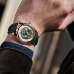 Celoto zapolnjuje temno zeleni pašček iz aligatorjeve kože, ki se na zapestje pritrdi z zložljivo zaponko. Cena svežih modelov Frederique Constant Classic Worldtimer Manufacture Green znaša 4.395 evrov v primeru, da se odločite za kovinsko izvedbo ohišja ter 18.995 evrov, če vam srce zaigra ob pogledu rožnatega zlata.