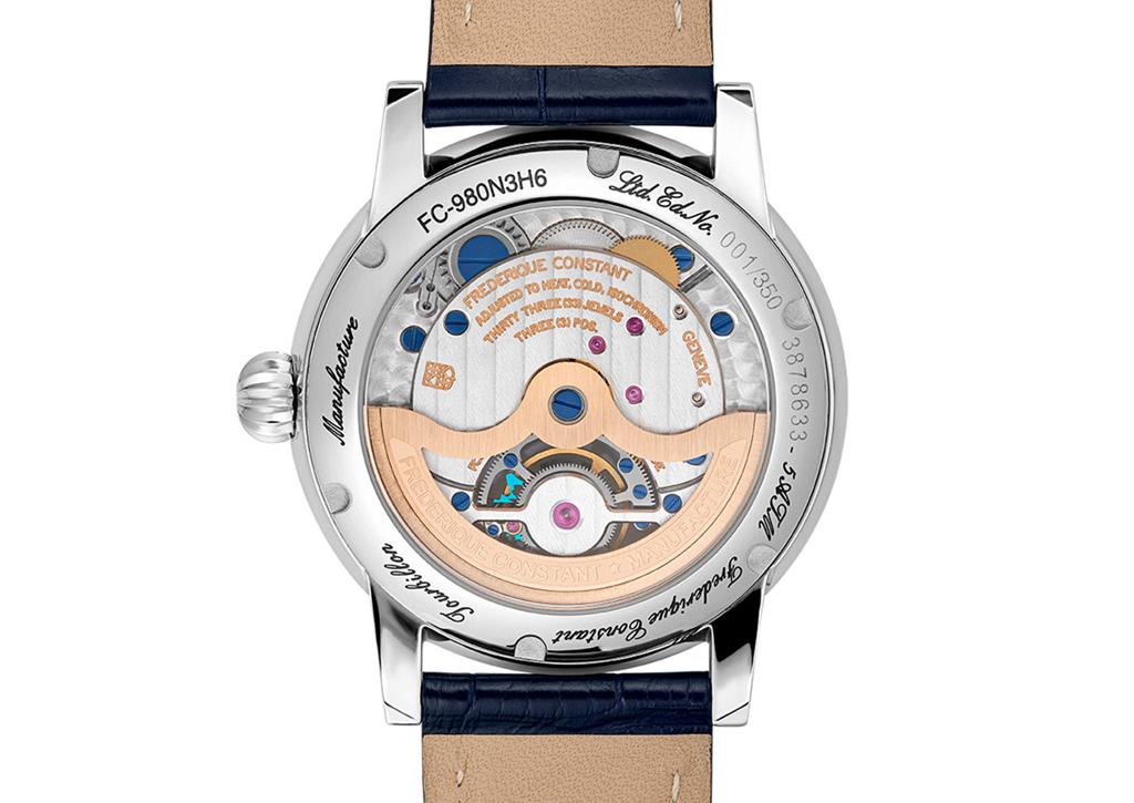 Znotraj ohišja se nahaja hišni mehanizem, kaliber FC-980. Avtomatski mehanizem z osrednjim rotorjem je razvoj klasičnega osnovnega kalibra. Deluje le na čas, ki ga najdemo na večini hišnih ur, pri čemer je standardni regulacijski organ zamenjal enominutni tourbillon. Mehanizem je opremljen s silikonskim zapornim kolesom in sidrom, deluje s frekvenco 4 Hz in se ponaša z 38-urno rezervo energije navitja. Za piko na i je mehanizem moč občudovati skozi safirni kristal hrbtne strani ohišja, čeprav verjamem, da bo večino vaše pozornosti ukradel tourbillon na številčnici.