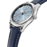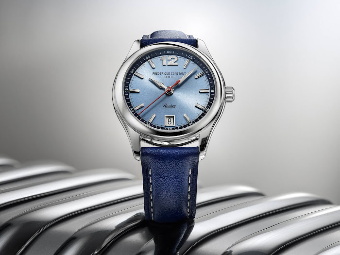 Frederique Constant Classics Vintage Rally Healey Automatic je 36-milimetrski ”trikazalni” model z datumskim okenjem, ki je v ohišju iz nerjavečega jekla. Številčnica s teksturo v stilu sončnih žarkov poudarja svetleče aplicirane urne oznake ter osrednjo arabsko številko „12“ na vrhu. Rdeči sekundni kazalec dodaja prefinjen športni pridih.
