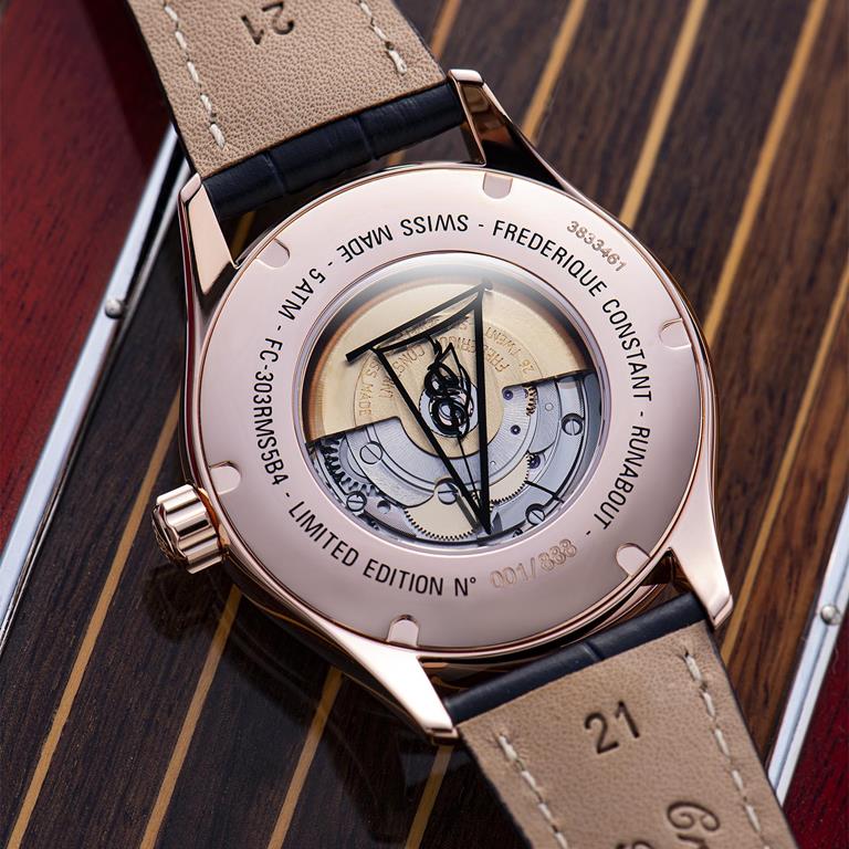 Frederique Constant Runabout Automatic, prevlečen z rožnatim zlatom, je opremljen z mornarsko modrim paščkom z bež šivi. Variacija iz nerjavečega jekla je opremljena z modro-sivim usnjenim paščkom s svetlo modrimi šivi. Oba modela Runabout sta številčno omejeni izdaji na 888 primerkov. Različica v rožnatem zlatu se prodaja za 1.950 evrov, jekleni varianta pa za 1.650 evrov. Več informacij o naročilu časomerov lahko dobite pri slovenskem zastopniku Sten Time.