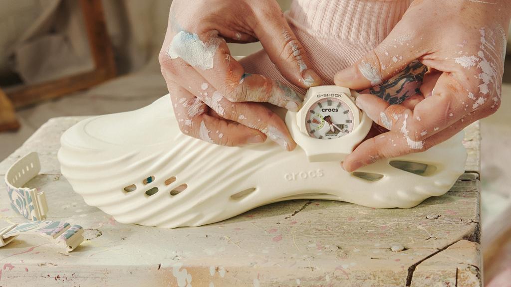 Partnerstvo je prineslo paket, sestavljen iz para bež Crocsov in ujemajočega se modela Casio G-Shock GA-2100, znanega tudi kot „CasiOak“. Čeprav je ujemajoči se pašček iz smole kulski, je ta kombinacija resnično posebna zaradi integriranega oklepa na čevlju, v katerega se ura tesno prilega. Ko gre za nošenje ure na čevlju, se zdi, da so se oblikovalci preveč ukvarjali z vprašanjem, ali lahko uro nosimo še kje drugje …