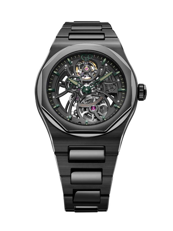 Predstavljeni Laureato Skeleton Ceramic s 42-milimetrskim črnim keramičnim ohišjem in integrirano keramično zapestnico je zelo diskretna partnerska edicija, ki jo izdajajo dirkaško zeleno obarvani kazalci ter oznake na številčnici. Celota tako deluje bolj zrelo, elegantno in ”širše uporabno”.