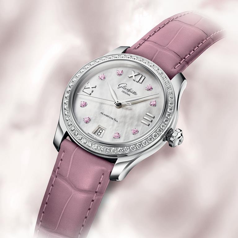 Prispodobo na stran. Nemški izdelovalec prikupno dovršenih časomerov Glashüette Original, katere smo že preizkusili na uredništvu in si zapise lahko preberete tukaj in tukaj, je v sklopu ljubezenske tematike Valentinovega izdal omejeno serijo 50 primerkov modela Lady Serenade.