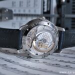 Na srečo več desetletij delujoča manufaktura ve kako se stvari streže, zato so lepo obdelane mehanizme postavijo na ogled. Oko bo najprej ozrlo skeletni rotor avtomatskega mehanizma kalibra 90-02 z dvojim G simbolom, ki je narejen iz 21 karatnega zlata. Njegovo delo je, da med nošnjo vestno navija vzmet, ki zmore shranili do 42 ur rezerve navitja. Zagotovo ne bo šlo mimo ročno graviranega nosilca mostička vpetja nemirke, katere fino delovanje se nastavlja s pomočjo dveh elegantnih ”labodjih vratov”. V bistvu je edini minus ta, da bodo mehanizem v večini primerov občudovali zgolj lastniki.