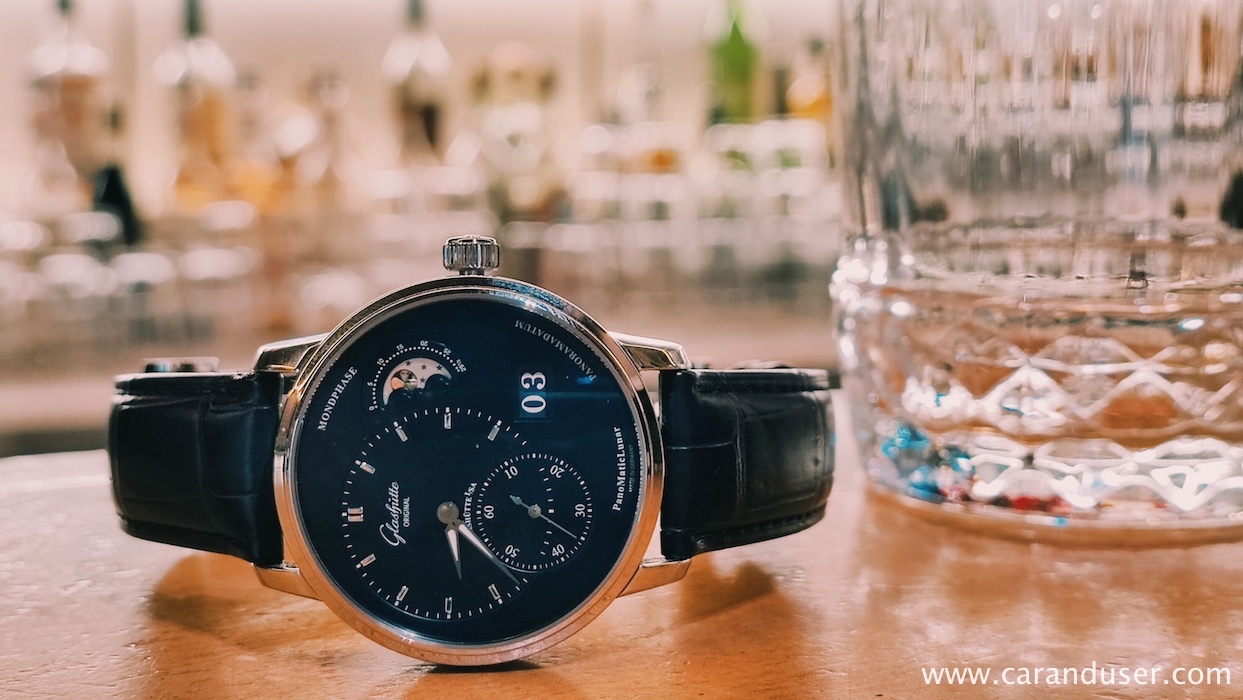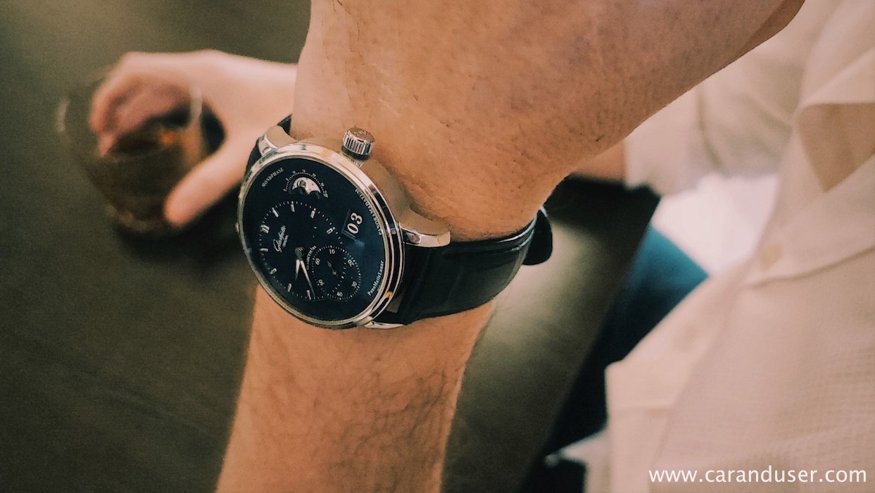 Med pogovorom urarske tematike sem pomislil na nedavno preizkušeno, idealno za njegovo zapestje. Petična, skrbno izdelana, mehansko popolna in elegantnega videza, ki nalašč ustreza življenjskemu stilu ljubitelja romantike mehanskih ur. Izvlečem telefon in pokažem fotografijo testne ure Glashütte Original PanomaticLunar. ”Poezija”, doda in nadaljuje: ”Poznam to nemško blagovno znamko. Vrhunske ure izdeluje. Škoda, da se vedno pri nakupu odločimo za klišeje. Mogoče jo kdaj postavim v svojo vitrino.”