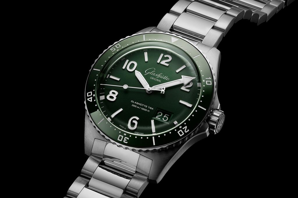 Kot pri večini prebarvanih modelov, osnova ohranja poznano strukturo in specifikacije. SeaQ Panorama Date še vedno v premer meri 43,2 mm, narejen je iz nerjavečega jekla, vodotesnost je odmerjena na 300 globinskih metrov. Vizuelna razlika je zdaj tam, da sta številčnica in luneta v odtenku, ki ga Glashütte Original imenuje trstično zelena. Slednje najverjetneje izhaja iz nemške gozdnate regije, in obenem opisuje, da odtenek ni tako briljanten kot smaragd, hkrati pa je bolj živahen kot barvit oljka ali kaki.