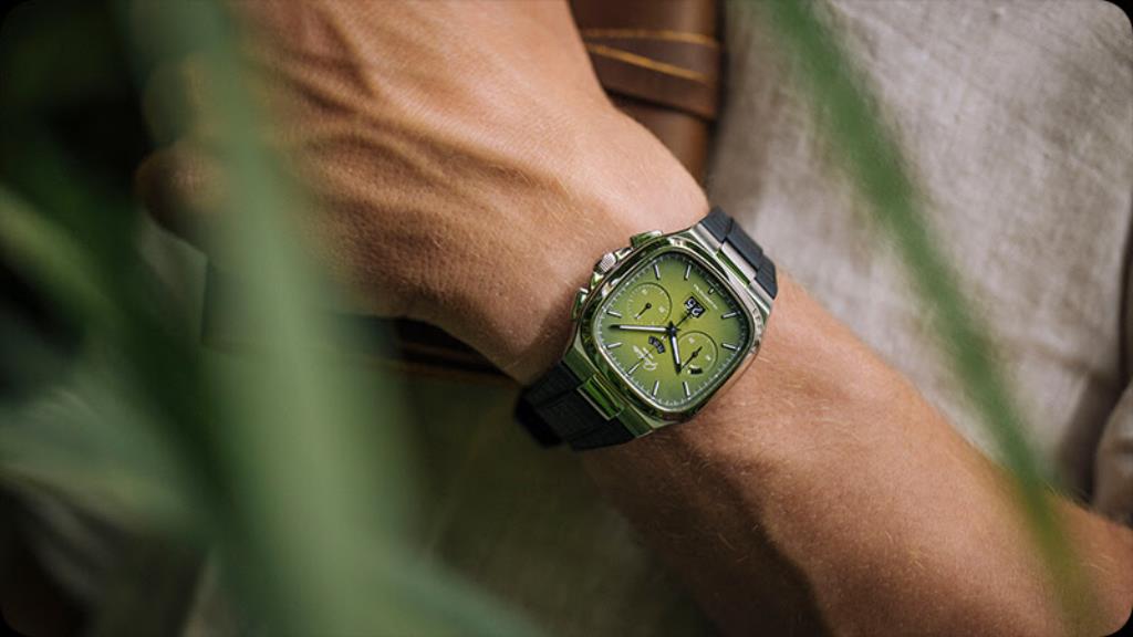Klasičen retro kronograf se predstavlja v moderni interpretaciji z dovršenimi edinstvenimi funkcijami in zasnovo za sedanjost, v katero kot nalašč sovpada trendna zelena barva številčnice.