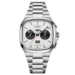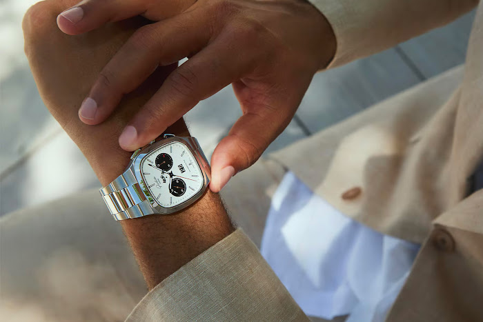 Nemška manufaktura je hišni kronograf, iz obdobja bogatega z bencinskimi hlapi, klasično zasnovala v belo-črni kombinaciji ter ga postavila ob bok številnim markantnim zapestnim primerkom.