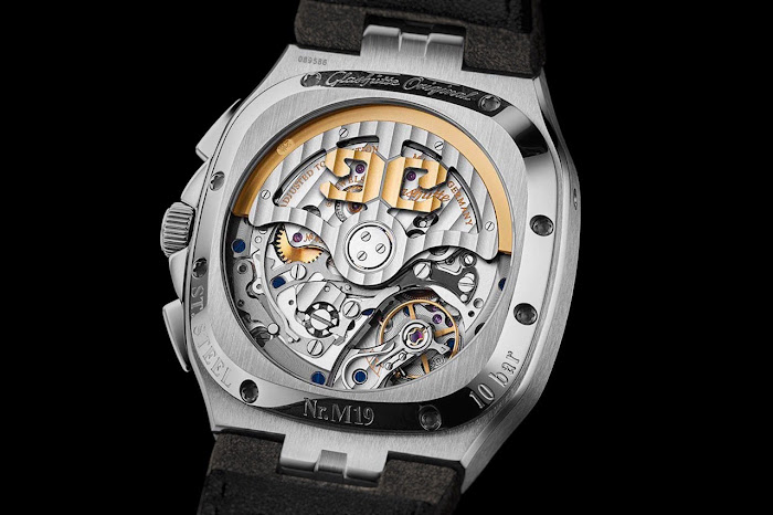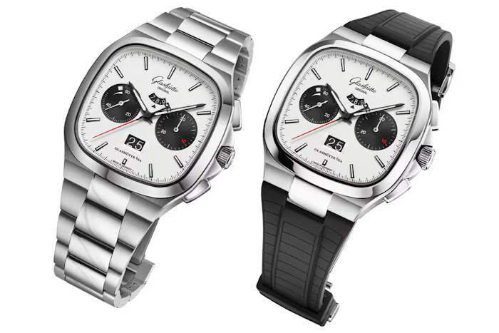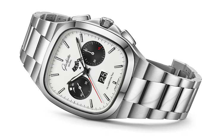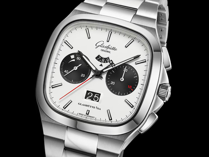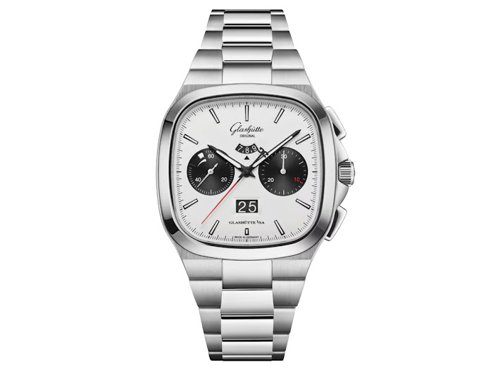 Zasnova ure ostaja složna kolekciji ”Seventies”. Kovinsko ohišje z zaobljenimi vogali meri 40 mm x 40 mm. Na beli številčnici poleg dveh črnih podštevilčnic kronografa najdemo še ”podpis” manufakture Glashütte Original v stilu zapleta ”Panorama Date”, ki se nahaja ob 6. uri. Pod 12.uro se nahaja logotip manufakture in nižje še števec z 12-urnim prikazom odmerjenega časa kronografa.