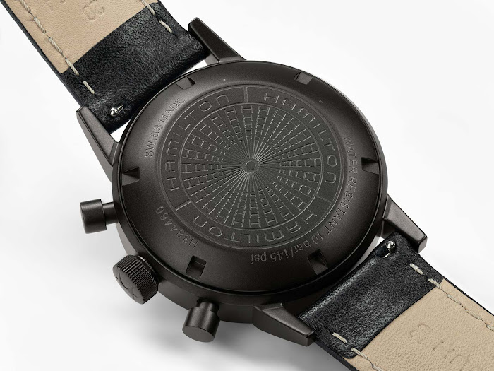 Za masivno hrbtno stranjo ohišja je skrit avtomatski kronografski mehanizem, kaliber H-31 (na osnovi modela ETA Valjoux 7753), ki bije s frekvenco 28.800 alternanc na uro (4 Hz) in ponuja 60-urno rezervo energije navitja. Predlagana maloprodajna cena nove ure Hamilton American Classic Intra-Matic Auto Chrono z ohišjem v črnem PVD zanša 2.295 evrov. Več informacij o možnosti preizkusa in nakupa lahko dobite v butikih Slowatch po Sloveniji.