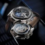 Definicijo rotirajoče številčnice predstavlja Reverso. Ni edini, je pa najbolj prepoznaven. Nekateri se boste spomnili še Cartierjeve kreacije. Poskusov je bilo že veliko in Jazzmaster Face 2 Face III spet evolucijsko interpretira zamisel vrtljivega dizajna ohišja. Posledično ponuja obraza. Ena števičnica prikazuje čas in vključuje funkcije kronografa, druga pa tahimetrično skalo s pogledom na delovanje mehanizma.