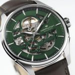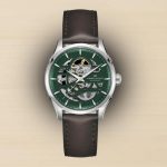 Jazzmaster Skeleton 40 mm v barvi Empire Green je na voljo v kombinaciji z rjavim usnjenim paščkom ali zapestnico iz nerjavečega jekla. Ura je del stalne kolekcije, cena z usnjenim pasom znaša 1.375 evrov, z jekleno zapestnico pa 1.445 evrov. Za možnost ogleda in nakupa se zglasite v najbližjem butiku Slowatch.