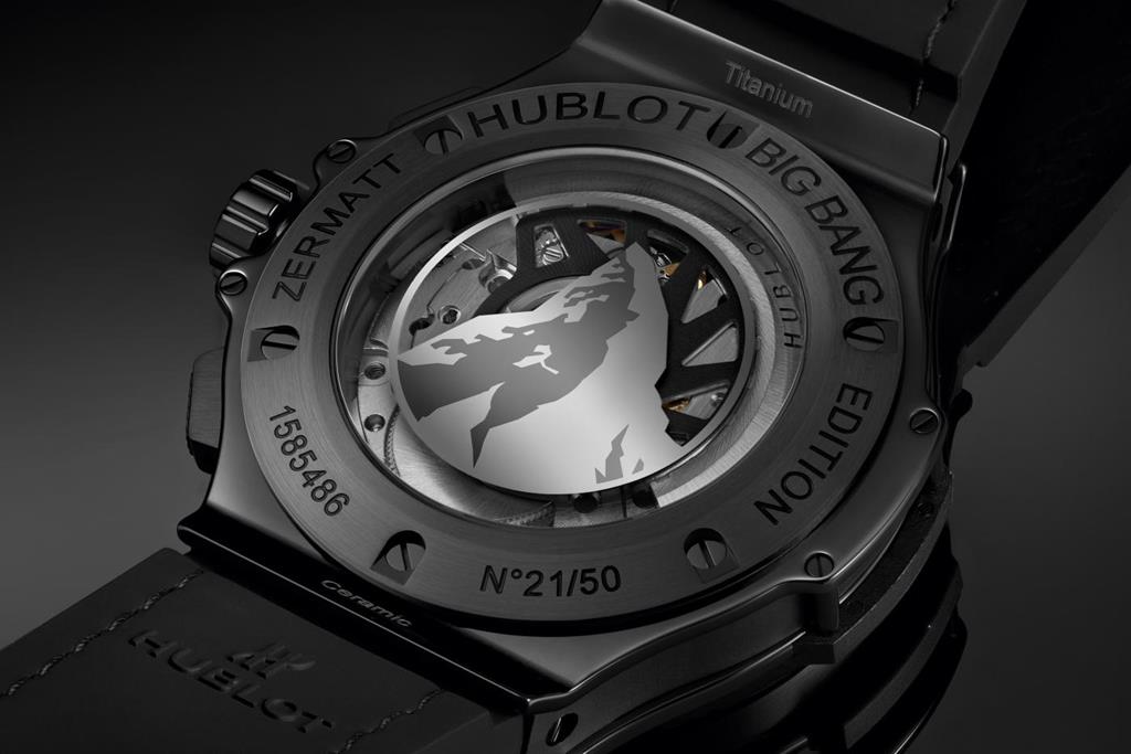 Podprt s Hublotovo filozofijo “nevidne vidnosti” bi lahko samo model Big Bang All Black bil primeren za nedoumljivo osebnost Matterhorna. Da bi se poklonili tej zapletenosti, Hublot predstavlja dve različici Big Bang All Black Zermatt. Moško in žensko izdajo ročne ure, ki sta si različni, a se hkrati dopolnjujeta. Predstavljata dve plati ene same identitete, enotne urološke vizije, kot dva obraza iste gore.