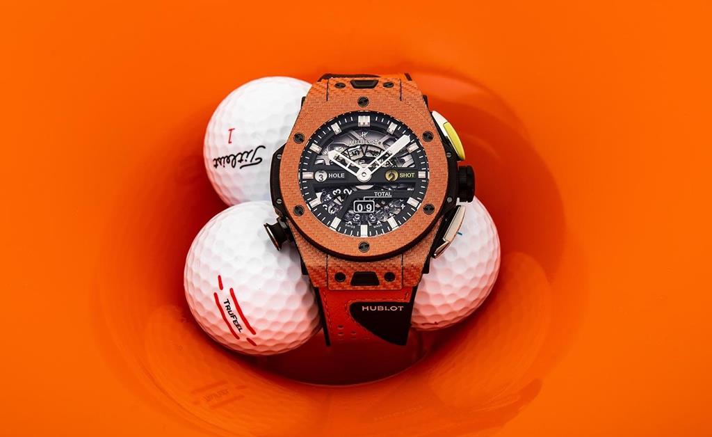 Big Bang Unico Golf, znan po barvitem 45-milimetrskem ohišju iz karbona in teksalija, je zdaj na voljo v privlačnem oranžnem odtenku, ki sledi prejšnjim izdajam kolekcije v sivi, črni, rumeni in modri barvi.
