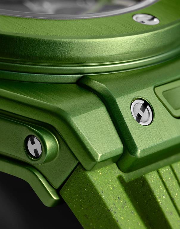 Ohišje s premerom 42 mm uporablja 28 odstotkov recikliranega aluminija, ki je nato anodiziran, da dobi zeleno barvo. Hrbtna stran ohišja in notranja konstrukcija mehanizma sta izdelana iz ekološkega titana. Vodotesnost je tako kot pri standardnem modelu ocenjena na 100 m. Edini zametek partnerstva med Hublotom in Nespressom je moč opaziti na kroni, kjer se nahaja diskreten logotip podjetja v lasti korporacije Nestle.