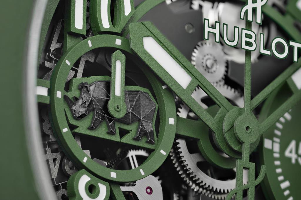Zapestna ura v zeleni barvi predstavlja inspiracijo z zelenjem bogate Južne Afrike. Keramično ohišje v premer meri 45 milimetrov in je debelo 15 milimetrov. Številčnica se pohvali s skeletnim izgledom, medtem ko se glavna atrakcija nahaja v števčku kronografa ob 9. uri – geometrijska upodobitev nosoroga.