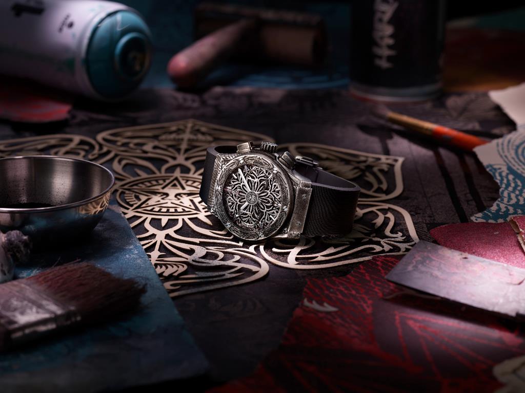 Hublot k umetniškim stvaritvam, po Takashiju Murakamiju in Richardu Orlinskemu, dodaja časomer s podpisom artista Sheparda Faireyja, ki sovpada z iniciativo podjetja “Hublot Loves Art”.