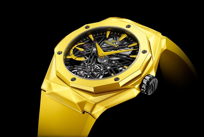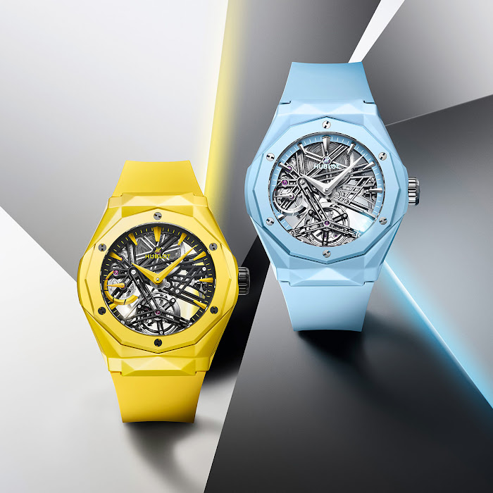 Hublot v sodelovanju z Richardom Orlinskim, najbolje prodajanim francoskim umetnikom na svetu, predstavlja zapestni duo Classic Fusion Tourbillon Orlinski, ki ga odlikujeta privlačen dizajn odet v čarobno rumeno in nebeško modro barvo.