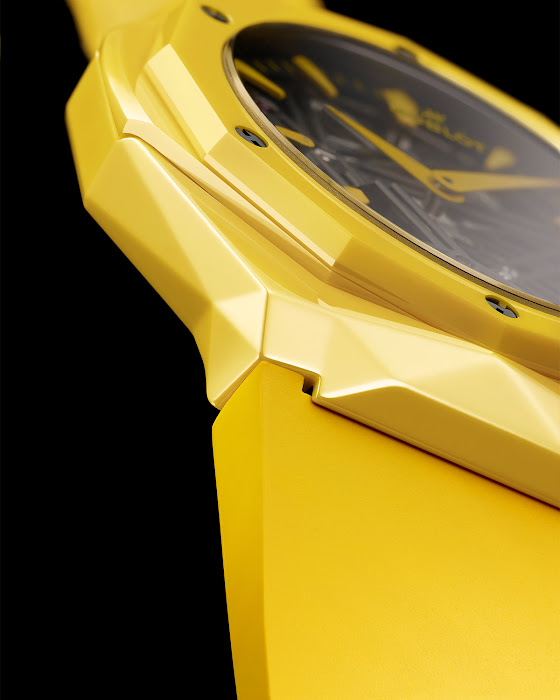 Prvi model izžareva sončni sijaj, saj so ohišje, pas, luneta, indikatorji in kazalci odeti v živahno rumeno barvo. Druga različica se zgleduje po “jasnem nebu”, kjer se kontrasti razblinijo ter preidejo v kromatično harmonijo.