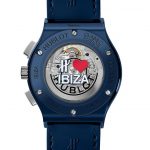 Prav tako se zdaj ponaša s popolnoma novim butikom Hublot žurerski otok Ibiza. Znotraj modrega keramičnega ohišja je nameščen avtomatski kronograf, ki utripa v ritmu noči na Ibizi s frekvenco 4 Hz ali 28.800 vibracij na uro. Na številčnici je simbol Flower Power – simbol otoka.
