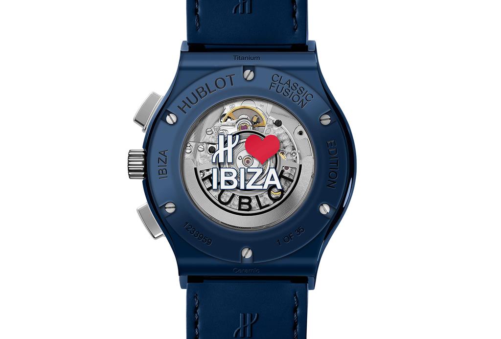 Prav tako se zdaj ponaša s popolnoma novim butikom Hublot žurerski otok Ibiza. Znotraj modrega keramičnega ohišja je nameščen avtomatski kronograf, ki utripa v ritmu noči na Ibizi s frekvenco 4 Hz ali 28.800 vibracij na uro. Na številčnici je simbol Flower Power – simbol otoka.