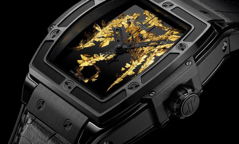 Pravo malo evforijo je povzročila zapestna ura Classic Fusion Gold Crystal, ki ga je blagovna znamka predstavila v lanskem letu. Popolnoma črna ura je bila na številčnici okrašena z zlatimi kristali, ki ponujajo drzen in neustavljiv kontrast. Zdaj Hublot začenja naslednje poglavje, ki vključuje zlate kristale v uri Spirit of Big Bang.