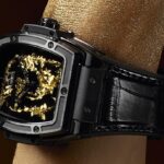 Preostale komponente zapestne kreacije so ponovno odete v črnino. Ohišje je izdelano iz keramike in je na voljo v premeru 39 mm in 42 mm. Znotraj slednjega se nahaja mehanizem Calibre HUB1710, ki temelji na Zenith Elite 670, enem najbolj izstopajočih samodejnih mehanizmov. Za piko na i pa poskrbi črni aligatorski pašček, všit na podlogo iz kavčuka za optimalno udobje nošenja. In cena? Dobrih 25 tisočakov.