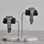 Naslednja sladka skrb, po tem ko boste očistili vaše časomere pa bo, ali lahko še kako drugače občudujem in pokažem svoje časomere? Tudi za to imajo rešitev pri IFL Watches. Stojalo za ure je nalašč za omenjeno dejavnost – občudovanje. Marmorni podstavek, krom nosilec ter usnjena blazina, s katere pozira vaša zapestna ura. Podstavek Panda Lilac, takšen kot na fotografiji, z dvema mestoma vas bo olajšal za 299 evrov.