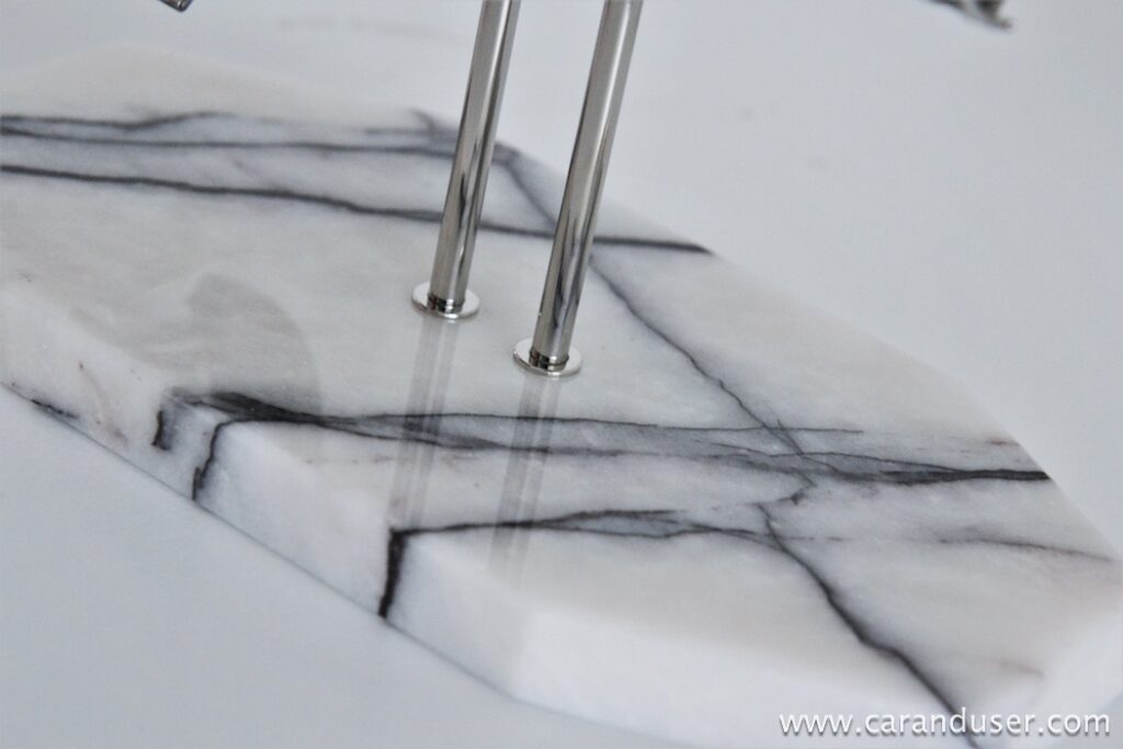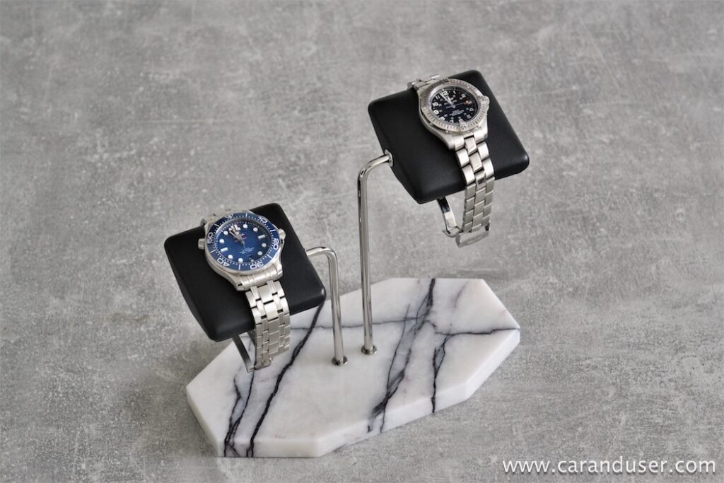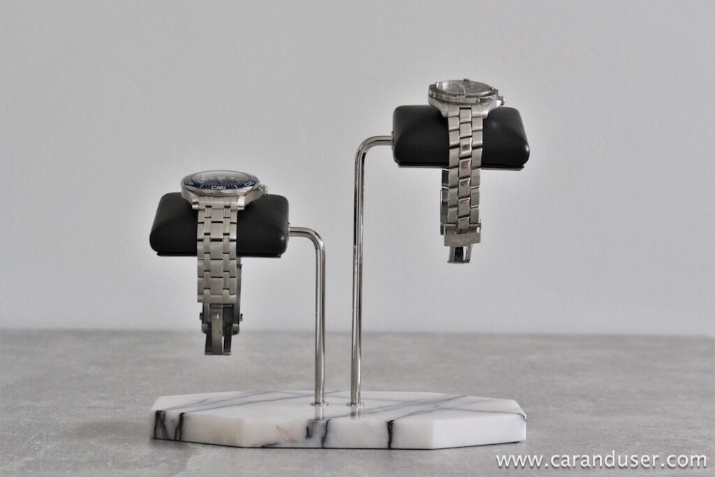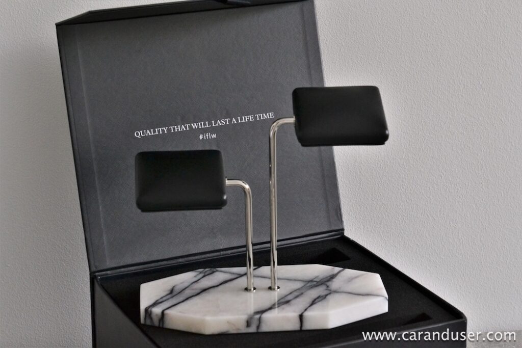 Naslednja sladka skrb, po tem ko boste očistili vaše časomere pa bo, ali lahko še kako drugače občudujem in pokažem svoje časomere? Tudi za to imajo rešitev pri IFL Watches. Stojalo za ure je nalašč za omenjeno dejavnost – občudovanje. Marmorni podstavek, krom nosilec ter usnjena blazina, s katere pozira vaša zapestna ura. Podstavek Panda Lilac, takšen kot na fotografiji, z dvema mestoma vas bo olajšal za 299 evrov.